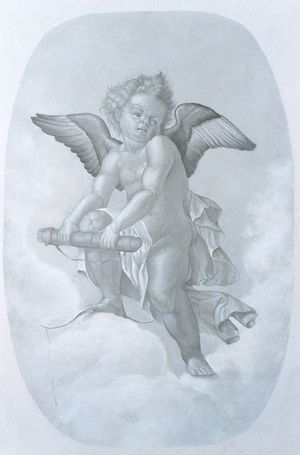Aufgabenstellung: Für die Füllungen wünschte sich der Auftraggeber eine Darstellung des römischen Gottes Amor im Stile des Barock