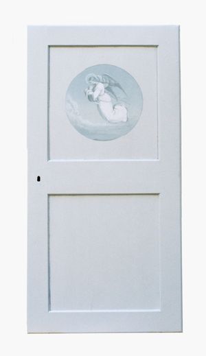 Eine Schranktür sollte mittels Grisaillemalerei neu gestaltet werden.