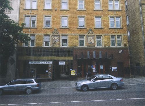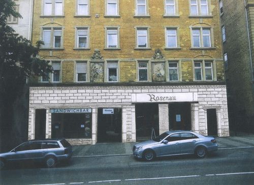 Der aktuelle Zustand der Fassade. Das Erdgeschoss ist gefliest. |