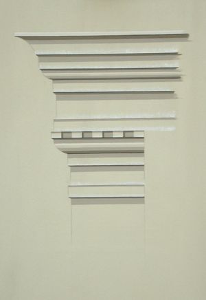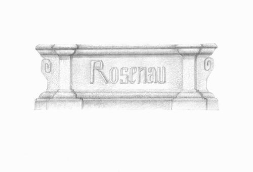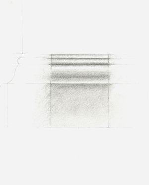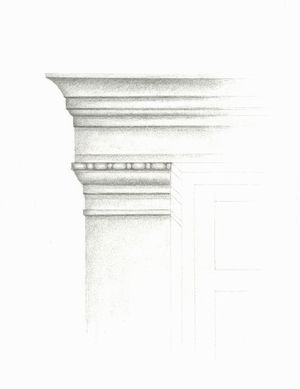 Die gleiche Situation als Grisaillemalerei (Entwurf). Im Kapitell des Türpfeilers wurde der Perlstab aus gestalterischen Gründen in einen Felderfries umgewandelt. |