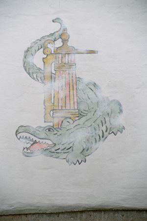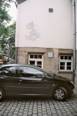 Bauliche Situation vor der Rekonstruktion - das Logo ist stark verblasst. |